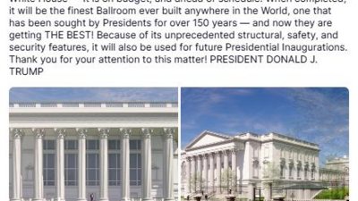“全世界有史以来最精美宴会厅”:特朗普发布白宫宴会厅两张效果图