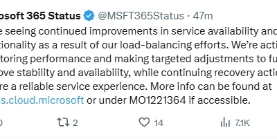 微软回应多项服务突然中断:采取恢复措施保障产品使用