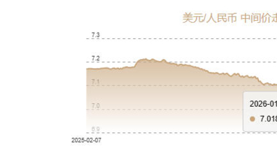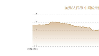 2月4日人民币对美元中间价报6.9533 上调75个基点
