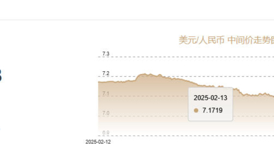 2月13日人民币对美元中间价报6.9398 上调59个基点