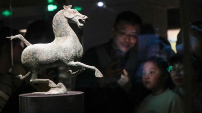 大年初二下午,“湾里·王府井WellTown”一层的悬水之境人头攒动。摊位被巧妙地打造成红、黄、蓝、绿、粉五组“礼盒”造型。市集入口处,一匹粉红色的骏马昂首挺立,仿佛在热情地迎接每一位到来的客人。商家更是将传统工艺与马年元素融合。北京冬奥会吉祥物“冰墩墩”也摇身一变,成为可爱的“马墩墩”:它头戴马儿头饰,手拿马儿手办,化身摆件、徽章、毛绒玩具、冰箱贴、钥匙扣等丰富多样的产品样式。