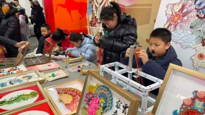 1月14日,四川省遂宁市高新区瑰宝明珠幼儿园举办迎新春非遗庙会,一只身披舞狮服的机器狗在活动上亮相,为师生送来温馨祝福。新华社发(钟敏摄)