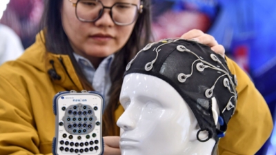 天津大学脑机海河实验室团队研发的无创脑机接口康复系统“神工—灵犀指”。(受访者供图)