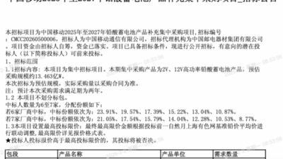 此前招标公告显示,本招标项目采购内容为中国电信集团有限公司和中国电信股份有限公司及其下属子公司、分公司在2025年至2027年各工程中所需的10kV电力电缆产品。包括ZA-YJV-8.7/15kV、ZA-YJV22-8.7/15kV等规模型号,规模71.96万米。