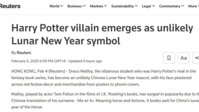 《哈利·波特》角色马尔福变马年吉祥物海外爆火,外媒:蛇年也可以是他