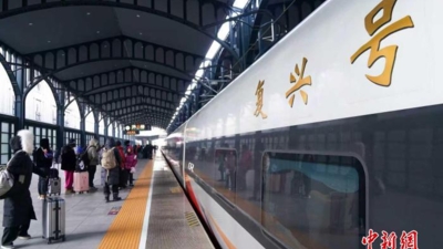 (新春走基层)2026年春运首日 上海 “东方号” 高铁列车开启新春送福活动