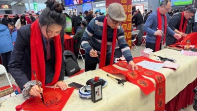 春运首日上海虹桥火车站“迎新送福”