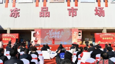 中新社乌鲁木齐1月20日电(苟继鹏)“家人们,今年的年货节开始,欢迎大家线上选购……”近日,在乌鲁木齐市米东区羊毛工镇,摊主王玉花对着手机屏幕直播,一旁摊贩的吆喝声此起彼伏。