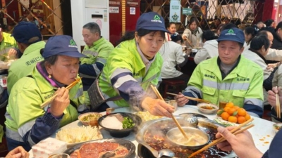 外卖骑手石建波从事配送工作已超过3年,春节临近,他的订单量和工作量已是平日的两倍。他对工会的服务如数家珍:“工会驿站有热水供应,有洗手间,还可以充电。”他分享道,平日里他经常利用驿站解决工作中的实际需求,而这顿特别的团年饭,更让他感受到了一种被尊重、被纳入城市的欣慰。