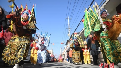 春节前的这段时间,榆中县受灾乡镇格外热闹,参与社火表演的队伍在抓紧排练。
