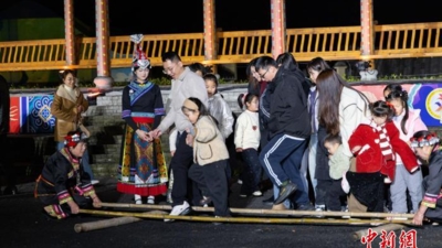 “表演特别有感染力,街区布置得也十分精美,随手一拍都很好看。”回乡探亲的张玉婷看完表演后,换上畲族“凤凰装”,在挂满灯串与绸带的风雨廊内拍照打卡,定格美好瞬间。