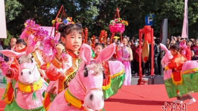 中新社安徽宣城2月25日电 (付敏 吴舒婷)25日,由37名孩童组成的昝村小马灯表演队伍,吸引众多当地村民和游客的目光。他们身披彩衣、胯下竹马,踩着鼓点穿梭奔跑,或列队布阵,或穿插走位。