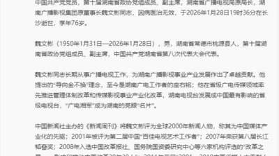 谢娜悼念魏文彬 缅怀“电视湘军”领军人物