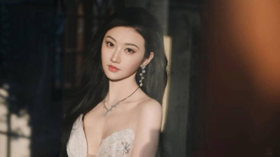 她穿着个性流苏设计的抹胸裙,宛若天外来仙。珍珠项链随意地在颈部缠绕了几层,有一种富态与端庄。